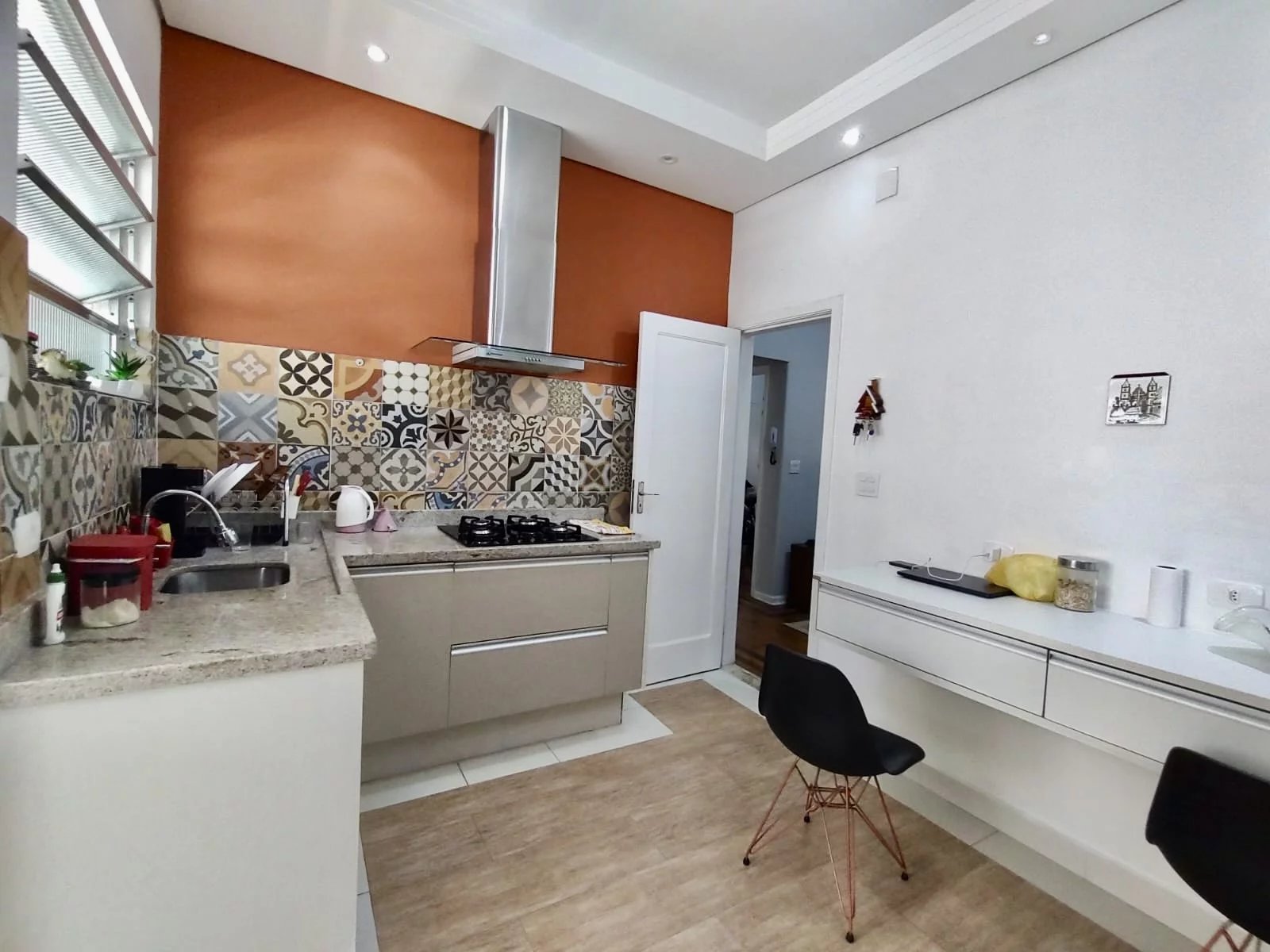 São 2 quartos, 2 banheiros, sala e cozinha moderna para o dia a dia da família.